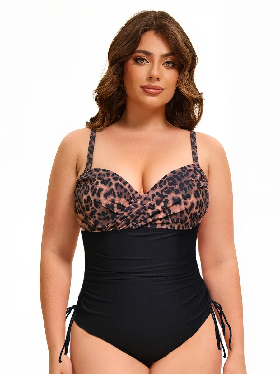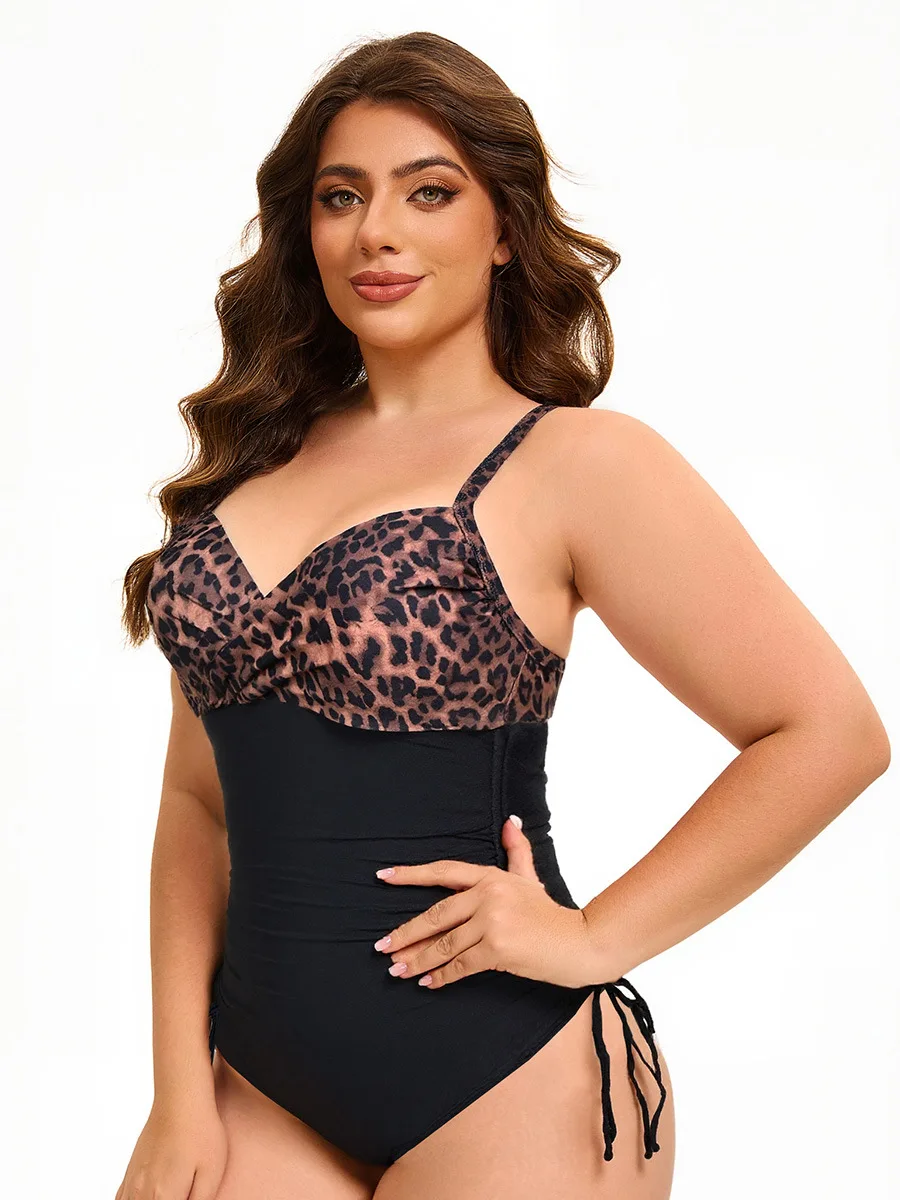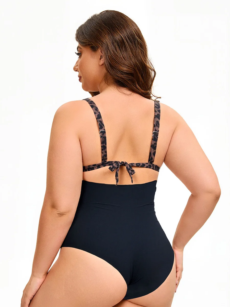 For Sports Sexy Backless Women's Plus Size Leopard Pattern Bikini Swimsuit Breathable Beachwear Regular Fit Europe